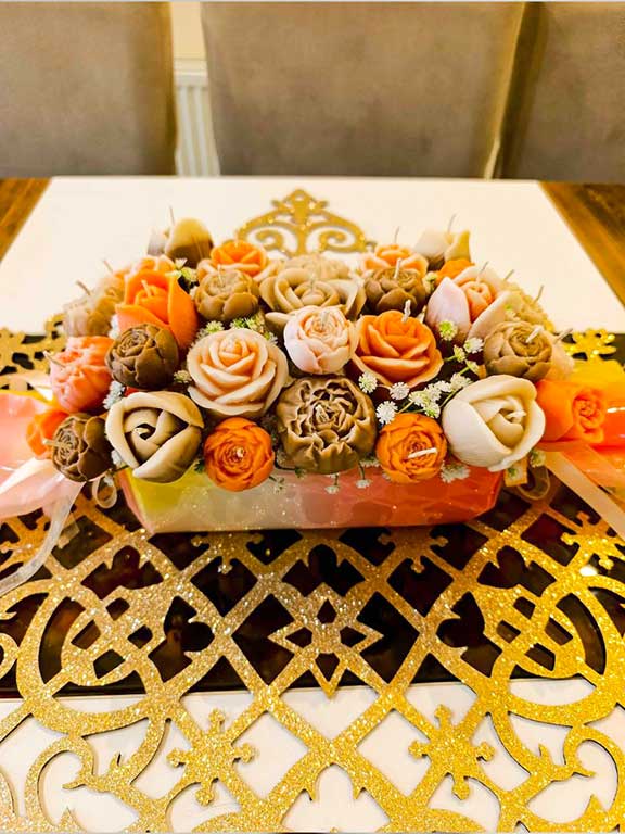 - باکس گل شمعی با تم شادی بی نظیر و خاص برای میز غذا خوری و شاد کردن دوستان و همکاران