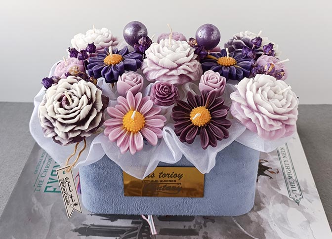 - ترکیب کیوت: این باکس شمع گل آلاله با طراحی هنرمندانه و گلهای خوشرنگ، هر دختری رو عاشق خودش میکنه.