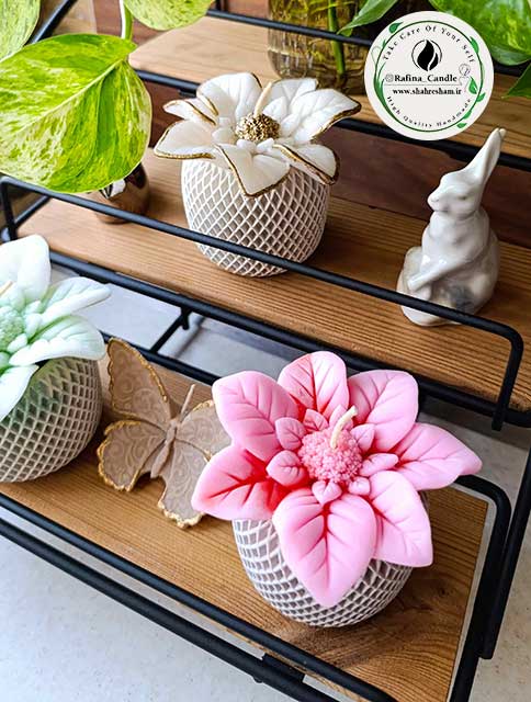 شمع تزئینی گل کوکب با گلدان طرح لوزی: جاذبهای خاص برای خانمها و دختران